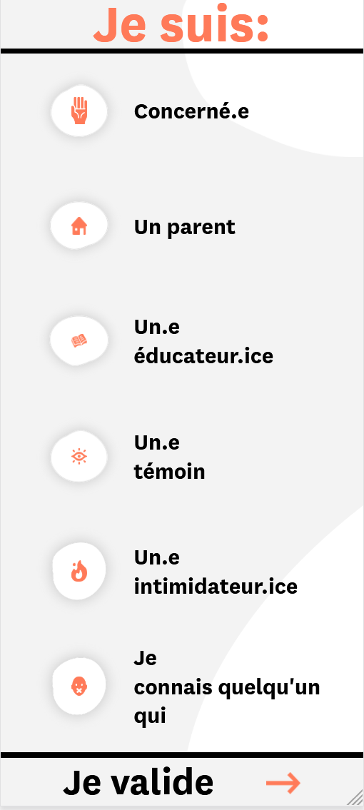 Avec le soutien de la DILCRAH, le partenariat actif du cabinet de legal design Amurabi et du designer UX-UI Geoffrey Dorne, Respect Zone a développé une application d’aide et d’orientation à destination des personnes exposées aux cyberviolences.